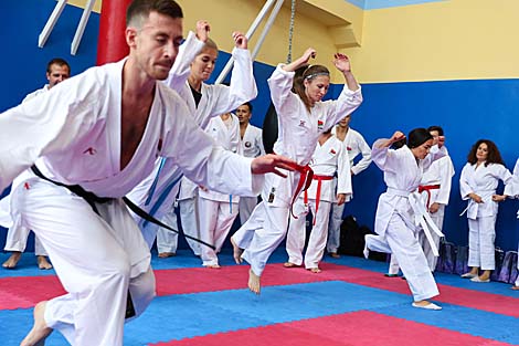Занятак праводзіўся ў зале кафедры спартыўна-баявых адзінаборстваў і спецпадрыхтоўкі Беларускага дзяржаўнага ўніверсітэта фізічнай культуры пад кіраўніцтвам майстра баявых мастацтваў, уладальніка другога дана па каратэ, сяміразовага чэмпіёна краіны Андрэя Грыневіча. Пасля інтэнсіўнай размінкі ўдзельнікаў трэніроўкі азнаёмілі з асновамі каратэ.