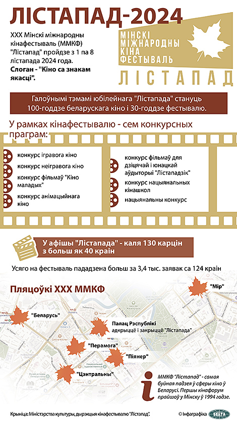 1 лістапада, Мінск /Кар. БЕЛТА/. Юбілейны XXX Мінскі міжнародны кінафестываль (ММКФ) "Лістапад" пройдзе ў Беларусі з 1 па 8 лістапада пад лозунгам "Кіно са знакам якасці".