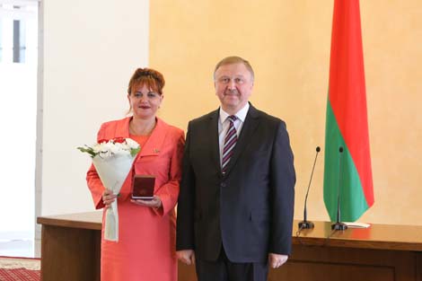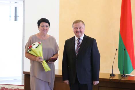 У ліку ўзнагароджаных і прадстаўнікі сферы адукацыі - педагогі, кіраўнікі ўстаноў адукацыі. "Гэтыя людзі ўнеслі значны ўклад у развіццё нацыянальнай сістэмы адукацыі, падрыхтоўку высокакваліфікаваных кадраў і выхаванне моладзі, у павышэнне якасці працэсу навучання за кошт укаранення ў практыку сучаснага метадычнага забеспячэння і выкарыстання новых адукацыйных тэхналогій. Разам з тым кіраўніком дзяржавы пастаўлены дакладныя задачы, якія неабходна вырашаць у бліжэйшы час, і ў першую чаргу гэта ўзмацненне сістэмы прафарыентацыі", - сказаў прэм'ер-міністр.