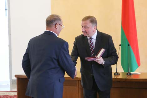 27 чэрвеня, Мінск /Кар. БЕЛТА/. Прэм'ер-міністр Беларусі Андрэй Кабякоў па даручэнні кіраўніка дзяржавы ўручыў сёння дзяржаўныя ўзнагароды заслужаным людзям краіны, перадае карэспандэнт БЕЛТА.