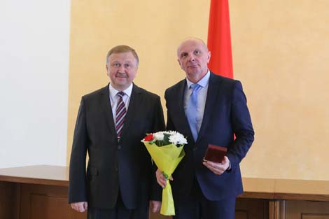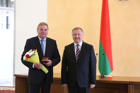 Высокія ўзнагароды былі ўручаны прамыслоўцам і энергетыкам. "Сёння ўжо з упэўненасцю можна сказаць, што прамысловасць Беларусі выйшла з рэцэсіі і набрала ўстойлівыя паказчыкі росту. Тэмп росту прамысловай вытворчасці ў мінулым годзе склаў 106,1 працэнта, за пяць месяцаў гэтага года - 108,3 працэнта. І ёсць усе перадумовы для таго, каб гэты тэмп па выніках года захаваўся. Упэўнены, будучае прамысловасці грунтуецца на ўкараненні прагрэсіўных тэхналогій, асваенні і выпуску новай канкурэнтаздольнай прадукцыі, і для гэтага ўсе ўмовы створаны. Эфектыўна развіваецца і энергетычны комплекс, які забяспечвае энергетычную бяспеку краіны. Цяпер ажыццяўляецца бесперабойнае энергазабеспячэнне спажыўцоў паліўна-энергетычнымі рэсурсамі ў неабходным аб'ёме і высокай якасці. Стаіць задача далейшага зніжэння энергаёмістасці ВУП, павышэння эфектыўнасці і надзейнасці энергазабеспячэння, максімальнага выкарыстання ўласных рэсурсаў", - звярнуў увагу Андрэй Кабякоў.