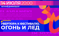 Унікальны падарунак да 30-годдзя міжнароднага фестывалю мастацтваў "Славянскі базар у Віцебску" зробяць артысты Дзяржаўнага балета на лёдзе Санкт-Пецярбурга. Пераможцы і прызёры сусветных спартыўных пяршынстваў па фігурным катанні пакажуць шоу "Агонь і лёд" пад купалам Летняга Амфітэатра. Спецыяльна для гэтага на галоўнай сцэне ўстановяць лядовую пляцоўку памерам 10 м на 15 м. Заснаваны ў 1967-м выдатным харэографам Канстанцінам Баярскім Санкт-Пецярбургскі балет на лёдзе з'яўляецца прадаўжальнікам традыцый рускай класічнай школы. Сёння ў яго рэпертуар уваходзяць такія пастаноўкі, як "Лебядзінае возера", "Шчаўкунок", "Рамэа і Джульета", "Папялушка", "Спячая прыгажуня"… На віцебскай сцэне артысты выступяць у суправаджэнні Concord Orchestra пад кіраўніцтвам італьянскага дырыжора Фабіа Пірола.