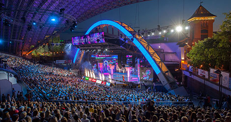 Асноўная сцэнічная пляцоўка – Летні амфітэатр – прыме цырымоніі адкрыцця і закрыцця, а таксама канцэрты "РОК-ПАНАРАМА", "Саюзная дзяржава запрашае...", КВЗ-гульню "Кубак "Славянскага базару ў Віцебску" з удзелам каманд Вышэйшай лігі КВЗ розных гадоў, рэтравечарынку "ЗАЛАТЫ ХІТ", гала-канцэрт "ШАНСОН ТБ – усе зоркі".