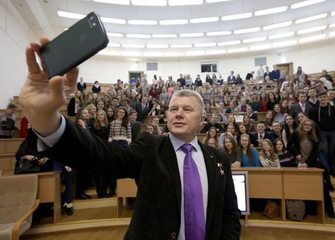 19 снежня, Мінск /Кар. БЕЛТА/. Касманаўт Алег Навіцкі сустрэўся са студэнтамі Акадэміі кіравання пры Прэзідэнце, перадае карэспандэнт БЕЛТА.