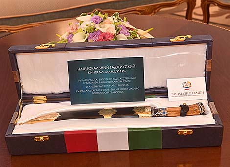 У сваю чаргу Эмамалі Рахмон падарыў кіраўніку беларускай дзяржавы нацыянальны таджыкскі кінжал Ханджар ручной работы, выраблены з выкарыстаннем косці аленя, з роспісам і гравюрай. Яшчэ адзін падарунак - карціна на палатне, на якой намаляваны Палац Наўруз. Гэты этнакультурны комплекс уключаны ў пералік васьмі дзівосаў Шанхайскай арганізацыі супрацоўніцтва.
