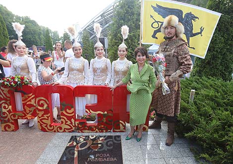12 ліпеня, Віцебск /Кар. БЕЛТА/. Прэзідэнт Беларусі Аляксандр Лукашэнка 12 ліпеня на цырымоніі ўрачыстага адкрыцця фестывалю "Славянскі базар у Віцебску" ўручыў спецыяльную ўзнагароду "Праз мастацтва - да міру і ўзаемаразумення" спявачцы Розе Рымбаевай, перадае карэспандэнт БЕЛТА.