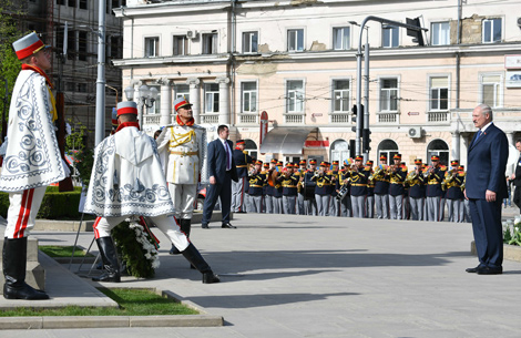 18 красавіка, Кішынёў /Міхаіл Маціеўскі - БЕЛТА/. Прэзідэнт Беларусі Аляксандр Лукашэнка ўсклаў вянок да помніка Штэфану Вялікаму ў Кішынёве, перадае карэспандэнт БЕЛТА.