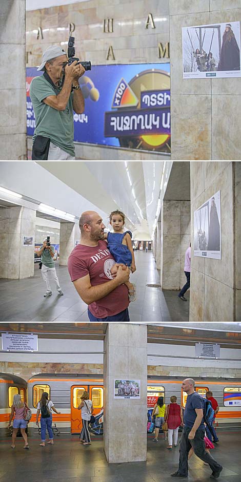 Частка з 20 прадстаўленых фатаграфій - работы фотакарэспандэнта БЕЛТА Аксаны Манчук. "Гэта першая міжнародная выстаўка, на якой выстаўлены мае фатаграфіі. Мне вельмі прыемна, што яна праводзіцца ў Ерэване, таму што БЕЛТА і інфармацыйнае агенцтва Арменіі АРМЕНПРЭС маюць цесныя сувязі. Прыемна таксама і тое, што фатаграфіі дэманструюцца на станцыі метро, такім чынам яны становяцца даступнымі для больш шырокіх мас. Людзі на працягу пяці хвілін чакання свайго поезда могуць паглядзець фатаграфіі і азнаёміцца з культурай нашай краіны", - адзначыла Аксана Манчук.