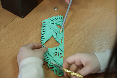 "Абапіраючыся на каноны народнага віду мастацтва, які мы абавязаны захоўваць і перадаваць сваім вучням, дэманструючы ўнікальнасць беларускай выцінанкі, вядомай ва ўсім свеце, мы дэманструем ідэю, што гэта вельмі дынамічны, незвычайна багаты і ўніверсальны від дэкаратыўна-прыкладнога мастацтва", - падкрэсліла майстар.