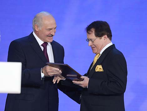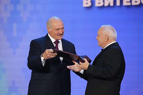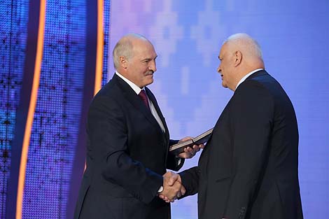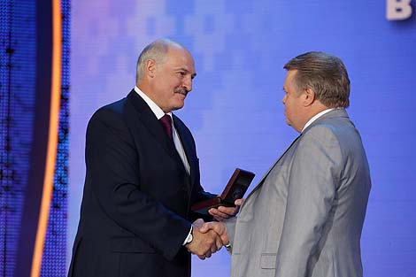 12 ліпеня, Віцебск /Кар. БЕЛТА/. Прэзідэнт Беларусі Аляксандр Лукашэнка ўручыў прэміі Саюзнай дзяржавы ў галіне літаратуры і мастацтва за 2017-2018 гады на ўрачыстым адкрыцці XXVII Міжнароднага фестывалю мастацтваў "Славянскі базар у Віцебску", перадае карэспандэнт БЕЛТА.