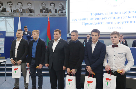 У Нацыянальным алімпійскім камітэце сёння адбылася цырымонія ўручэння імянных пасведчанняў 245 перспектыўным спартсменам і трэнерам, якія вызначаны цэнтральным саветам Прэзідэнцкага спартыўнага клуба для атрымання імянных стыпендый у 2018 годзе.