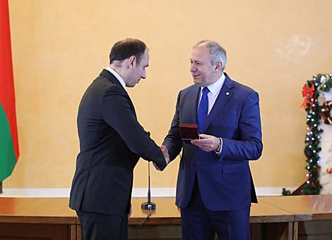 19 снежня, Мінск /Кар. БЕЛТА/. Прэм'ер-міністр Беларусі Сяргей Румас уручыў сёння дзяржаўныя ўзнагароды больш як 100 прадстаўнікам розных сфер, перадае карэспандэнт БЕЛТА.