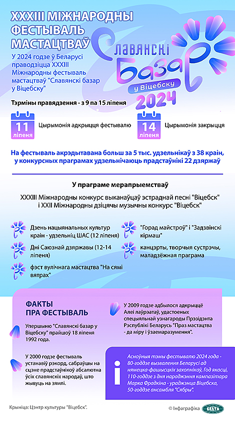 "Славянскі базар у Віцебску" праходзіць з 9 па 15 ліпеня. Афіцыйнае закрыццё форуму пройдзе 14 ліпеня.