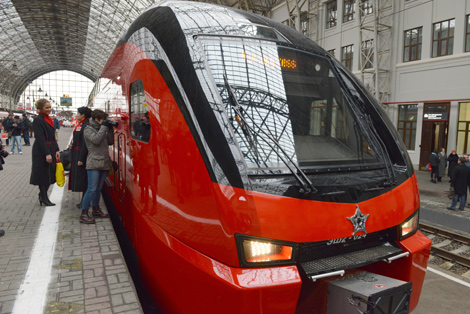 "Абнаўленне рухомага транспарту - адзін з этапаў развіцця кампаніі "Аэраэкспрэс" напярэдадні чэмпіянату свету па футболе - 2018, які пройдзе ў неколькіх расійскіх гарадах. І мы ўпэўнены, што масквічы і госці сталіцы змогуць па заслугах ацаніць усе тэхналагічныя навацыі, рэалізаваныя ў гэтых паяздах", - сказаў на цырымоніі адпраўлення першага састава міністр транспарту Расіі Максім Сакалоў. Ён падкрэсліў, што першы прыбыўшы ў Маскву двухпавярховы састаў атрымаў назву "Еўразія". Усяго "Аэраэкспрэс" набыў у "Штадлер Мінск" 11 саставаў.