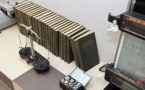 Роўным радам стаяць энцыклапедыі рэдакцыі 1924 года і наступных гадоў. Пад экспанаты, якія адлюстроўваюць кожны від экспертызы, адведзены асобныя стэлажы.