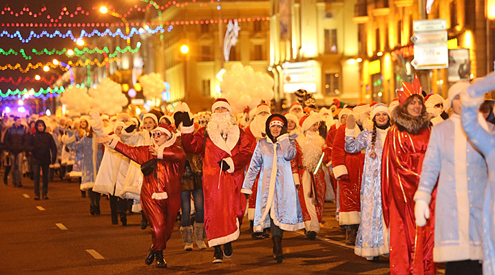 Тэатралізаванае шэсце Дзядоў Марозаў і Снягурачак на цэнтральных вуліцах зімовага Мінска з году ў год збірае сотні гледачоў. Цікава, што разам з традыцыйнымі персанажамі дзіцячых казак у ім прымаюць удзел і героі знакамітых мультфільмаў. Не абыходзіцца і без сюрпрызаў: у мінулым годзе ўдзельнікі вулічнага паказу пракаціліся не на карэце, а на новенькіх трактарах.