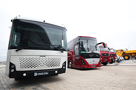 在"INNOPROM. 白俄罗斯"展会上明斯克汽车厂展出混合动力牵引车、旅游客车和电动垃圾车