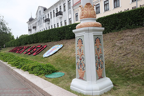 白通社明斯克6月12日电 以斯卢茨基腰带花纹为主题对路灯支座色彩装饰的艺术项目在明斯克市政厅旁进行了推介。
