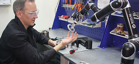 维克多•哈梅诺克解释说:“我们研发出的机械臂,它与人类的手臂有些相似,它有类似的手指,可以抓取物品,也可以搬移货物,如把货物从输送带上装进盒子里。还可测试产品,它可以做任何重复性动作。另外,它可以在自己周围70厘米范围内执行任务,举起3千克多重物体。这个机器人是合作式的,它可以和人一起工作而不采用专门防护,因为它配备的人工智能系统能够防止与人冲突。机器人通过加密无线网使用平板和智能手机操作。它可全天候作业”。设计和组装都是在白俄罗斯,其中95% 由公司自己完成。