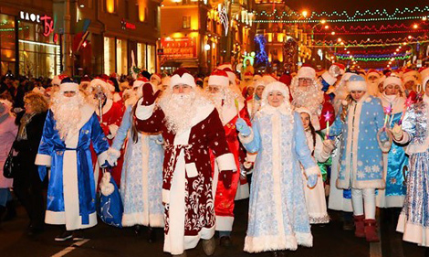 明斯克的市民和客人将会欣赏到传统戏剧化的圣诞老人和雪姑娘游行。 12月23日的童话主角游行路线包括独立广场和独立大道、列宁大街和胜利大道。计划于12月25日在上城区开始丰富多彩的演出以启动新年项目“国内新年魔法历险”。 到1月5日为止,每天在17:00-20:30之间可以观看演出。