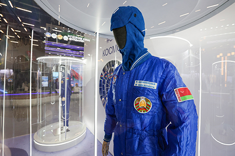 四个置于展示舱内的航天服尤为引人注目。专家解释道:“其中三套属于首位白俄罗斯女航天员玛丽娜·瓦西列夫斯卡娅(其太空飞行于去年完成),一套属于其替补阿纳斯塔西娅·连科娃。两套‘索科尔’航天服为实物,曾用于‘联盟MS-25’飞船的起飞、降落和对接过程。瓦西列夫斯卡娅的航天服可见使用痕迹:斑点、磨损。连科娃的航天服为训练用,几乎全新。此外还展出了用于极端寒冷着陆条件的航天服,以及玛丽娜·瓦西列夫斯卡娅在国际空间站穿着(即著名轨道照片中)的航天服。”