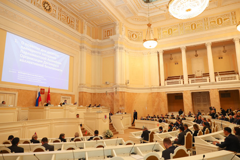 除了参加理事会大会,白俄罗斯议会代表团今日还参加集体安全条约组织议会大会第10届全体会议。全体会议与会者正在研究讨论组织示范法和建议草案。其中包括讨论“关于国家机密”、“关于能源安全”、“关于人道主义援助”示范法及关于集体安全条约组织成员国就军事人员训练事务统一立法建议。