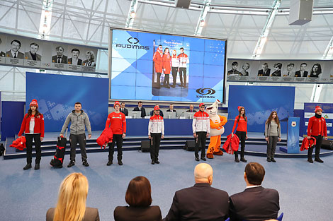 在记者招待会上,展示了白俄罗斯奥运选手的队服。服装由Audimas公司生产,保留了之前服装的元素,并继承了历史传统,由红色、黑色和白色构成,还有国旗的图案。