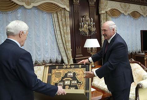 会议期间,卢卡申科向苏里科夫赠送了几件礼物。其中有在木头上雕刻的白罗斯地图。