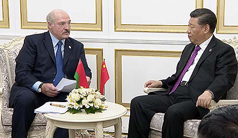 在峰会正式部分结束时,亚历山大·卢卡申科会见了中国国家主席习近平和俄罗斯总统弗拉基米尔·普京。
