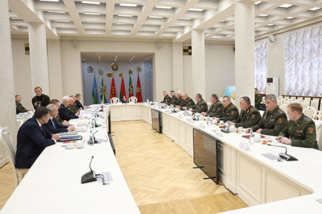 维克多·赫列宁表示:"双方将继续推进该领域的具体合作。所有已达成的协议,包括在联盟国家框架内落实《安全保障条约》的相关内容,都已全面执行。我们过去始终、未来也将继续肩并肩捍卫两国和人民的安全,并将对任何侵犯白俄罗斯共和国和俄罗斯联邦的行为采取一切必要应对措施。"