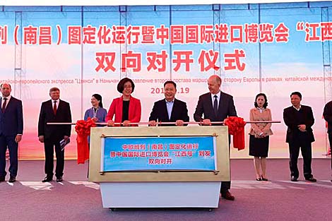 Consul General of Belarus to Shanghai Valery Matsel, Jiangxi Province Vice Governor Wu Zhongqiong, Secretary of the Nanchang Committee of the Communist Party of China Yin Meigeng took part in the train welcome ceremony. First Deputy Chairman of the Orsha District Executive Committee Sergei Pats and Director of OOO Bremino Group Vasily Dementei came from Belarus to attend the event.