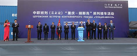 MINSK, 14 July (BelTA) - The first container train arrived in Minsk from Chongqing. A welcoming ceremony was held at the Kolyadichi terminal of the state enterprise Belintertrans – Transport-Logistics Center (BTLC) of Belarusian Railways on 14 July, BelTA has learned.