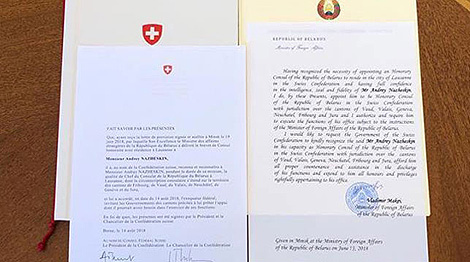 “The Swiss government has granted the exequatur to Andrei Nazheskin, Belarus’ Honorary Consul to Lausanne with the consular district in the Cantons of Vaud, Valais, Geneva, Neuchatel, Fribourg and Jura,” representatives of the diplomatic mission said.