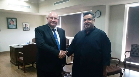 MINSK, 17 October (BelTA) - Belarusian Ambassador to Pakistan Andrei Yermolovich met with Pakistani State Minister for Science and Technology Dostain Khan Domki, BelTA learned from the Belarusian embassy.