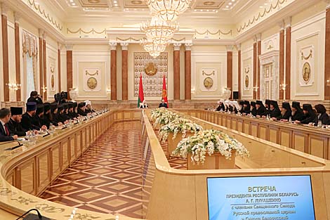 MINSK, 15 October (BelTA) – Patriarch of Moscow and All Russia Kirill is always welcome in Belarus not only as the head of the Russian Orthodox Church but also as a kindred spirit. Belarus President Alexander Lukashenko made the statement as he met with members of the holy synod of the Russian Orthodox Church and the synod of the Belarusian Orthodox Church on 15 October, BelTA has learned.