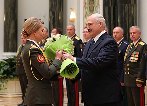 The best graduates of military universities were also honored at the ceremony in the Palace of Independence. They received letters of commendation from the Belarusian president.