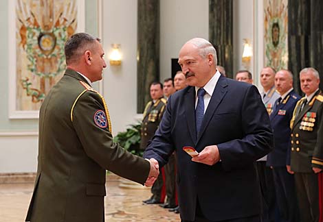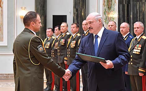 MINSK, 10 July (BelTA) – Belarus President Aleksandr Lukashenko presented shoulder boards to high-ranking officers at the Palace of Independence on 10 July, BelTA informs.