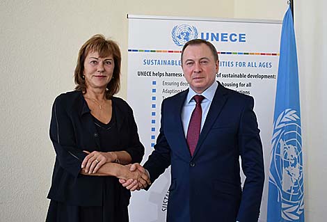 During his visit to Geneva Vladimir Makei met with UNECE Executive Secretary Olga Algayerova. The minister expressed satisfaction with the cooperation between the government and the UNECE Secretariat. Vladimir Makei emphasized the relevance of technical assistance projects implemented by UNECE experts in environmental protection, energy saving, housing and utilities, population ageing, optimization of management in innovations, promotion of public-private partnership and other areas of expertise in Belarus. This work makes a direct contribution to the improvement of the social and economic system in Belarus.