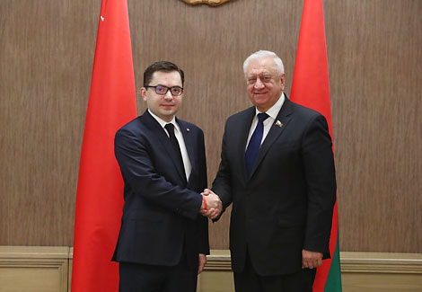 MINSK, 20 January (BelTA) – Belarus and Poland need more joint innovative investment projects, Chairman of the Council of the Republic of Belarus’ National Assembly Mikhail Myasnikovich noted as he met with outgoing Ambassador Extraordinary and Plenipotentiary of Poland to Belarus Konrad Pawlik on 20 January, BelTA has learned.