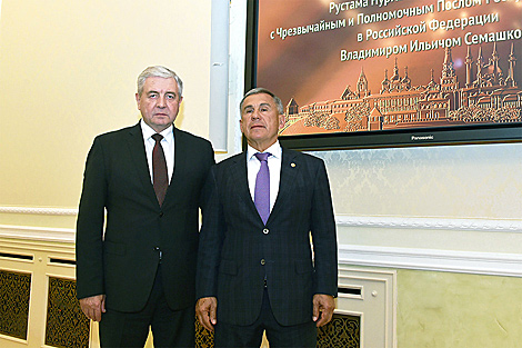 MOSCOW, 2 September (BelTA) - Belarusian enterprises are ready to take an active part in expanding cooperation with Tatarstan, implementing import substitution programs, advancing further close cooperation in mechanical engineering, petrochemistry, agriculture, construction and road transport, Belarus' Ambassador to Russia Vladimir Semashko said as he met with Tatarstan President Rustam Minnikhanov in Kazan on 2 September, BelTA learned from the press service of the Belarusian diplomatic mission.