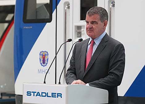 DZERZHINSK DISTRICT, 20 March (BelTA) – I am confident that the cooperation with Stadler will continue to be successful and that more joint projects will be implemented, Belarus’ First Vice Premier Alexander Turchin said at a roll-out ceremony for the first Stadler Minsk train for the Minsk Metro on 20 March, BelTA has learned.
