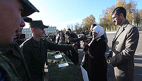 The heads of diplomatic missions, representatives of international organizations accredited in Belarus toured the 120th Independent Guards Mechanized Brigade of the North Western Operational Command at the invitation of the Belarusian Defense Ministry. They studied the history, structure and objectives of the brigade, the training of anti-aircraft gunners, artillerists and specialists in chemical and biological defense. The diplomats were shown samples of small arms, munitions and outfits of the brigade. They also visited the Uruchie firing range to see weapons practices and watched soldiers staging a tactical event.