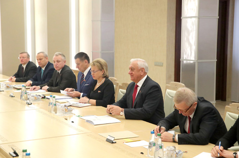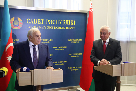 MINSK, 11 October (BelTA) - Belarus is interested in the development of investment cooperation with Azerbaijan, Chairman of the Council of the Republic Mikhail Myasnikovich said as he met with Chairman of the Milli Mejlis Oktay Asadov in Minsk on 11 October, BelTA has learned.