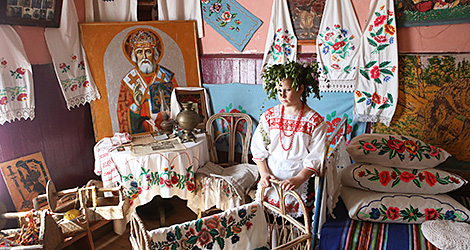 The main keeper of the rites of the Pahost village is Katsiaryna Panchenya. The old woman knows local traditions inside and out, she sings hundreds of ritualistic songs and has an extensive collection of local arts and crafts at home. The rooms are decorated with self-made blankets and carpets, curtains, tablecloths and towels embroidered with Polesie patterns. It is here where the locals often gather to prepare for the rite.