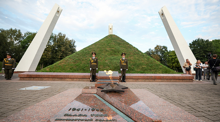 The Mound of Immortality in Lida’s central park commemorates the events and heroes of the Great Patriotic War. Since 9 May 1966, numerous delegations brought there soil from battlefields. In 1967, the Tomb of the Unknown Soldier was moved to this place. The 7m-high pentagonal pyramid, 55m at the base, was set up as a tribute to the fallen. In 1974, 14m-high pylons were added to the composition. They stand at the 76° angle and symbolize gun barrels.