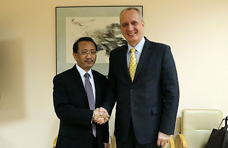 23 ноября, Минск /Корр. БЕЛТА/. Заместитель министра иностранных дел Беларуси Андрей Дапкюнас провел встречу c послом Индонезии в России и Беларуси (по совместительству) Вахидом Суприяди по случаю 25-летия установления дипломатических отношений между Беларусью и Индонезией, сообщили БЕЛТА в пресс-службе белорусского МИД.