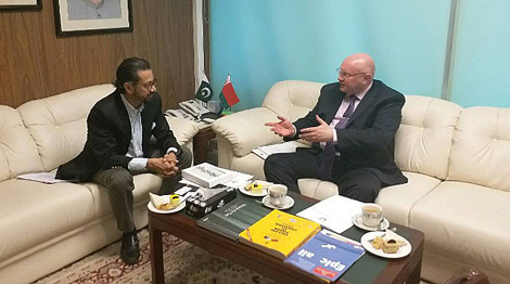 4 апреля, Минск /Алина Гришкевич - БЕЛТА/. Беларусь намерена презентовать свои инвестиционные возможности в Пакистане. Вопросы подготовки к данному мероприятию обсудил 4 апреля Чрезвычайный и Полномочный Посол Беларуси в Пакистане Андрей Ермолович на встрече с государственным министром, председателем Совета по инвестициям Пакистана Наимом Заиндаром. Об этом корреспонденту БЕЛТА сообщили в посольстве Беларуси в Исламабаде.