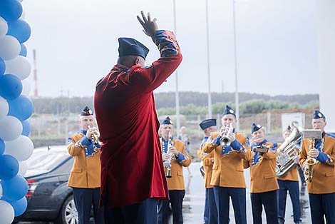 В церемонии приняли участие министр промышленности Виталий Вовк, генеральный директор ОАО "БелАЗ" Петр Пархомчик, глава администрации города Березовский Евгений Писцов и топ-менеджер ООО "БелТрансЛогистик" Михаил Дубасов.