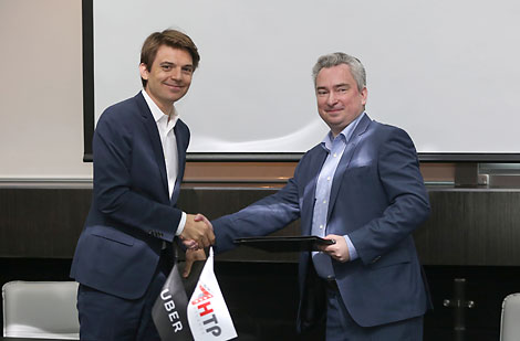 24 мая, Минск /Корр. БЕЛТА/. Директор Парка высоких технологий Всеволод Янчевский и генеральный директор Uber по регину Европы, Ближнего Востока и Азии Пьер-Димитри Гор-Коти подписали соглашение о сотрудничестве. Ключевые направления - открытие центра научно-технических разработок Uber в Парке высоких технологий, а также совместная работа в сфере беспилотного транспорта.