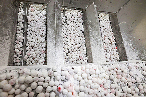 - Важное значение имеет оборудование. Закаточный стол - разработка отца. У установки есть свои особенности, какие - секрет, коммерческая тайна. Технологическая линия и производственный процесс запатентованы. Рецептура была согласована с соответствующими органами. Еще мы не используем готовую сахарную пудру. Сами мелем сахар (в основном Слуцкого сахарорафинадного комбината) на микромельнице. В итоге получаем массу воздушную как пух. Нанесение сахарной пудры на изделие происходит на закаточном столе. Но это еще не готовый продукт, а полуфабрикат. Если в этот момент взять драже в руки, пудра сразу рассыпется. Поэтому есть еще завершающая стадия - сушка в шкафах. Только после этого происходит фасовка. Линия позволяет в смену выпускать 600-800 кг драже.